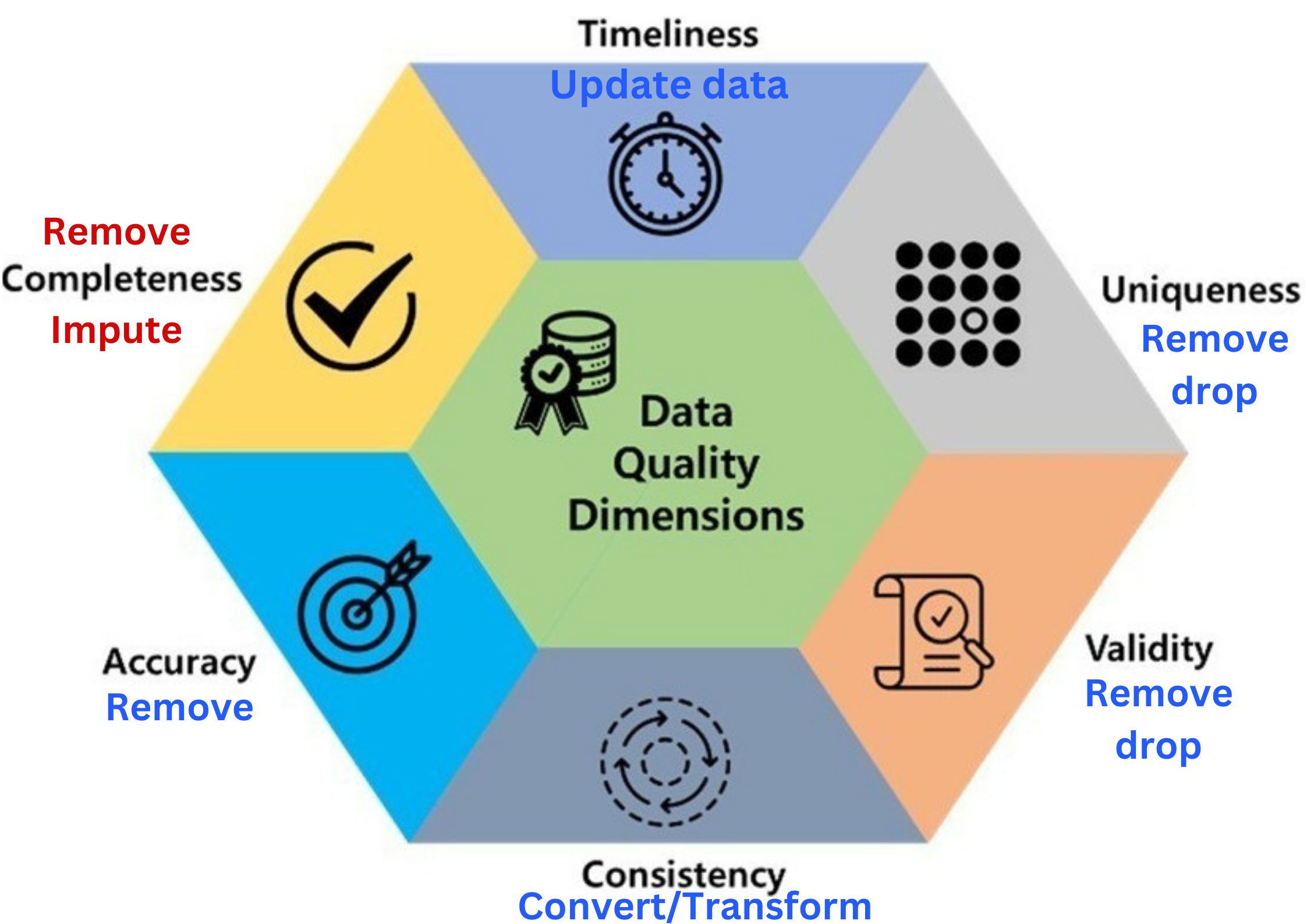 Consistency: data should be uniform and compatible (format, type…) across different datasets and over time.