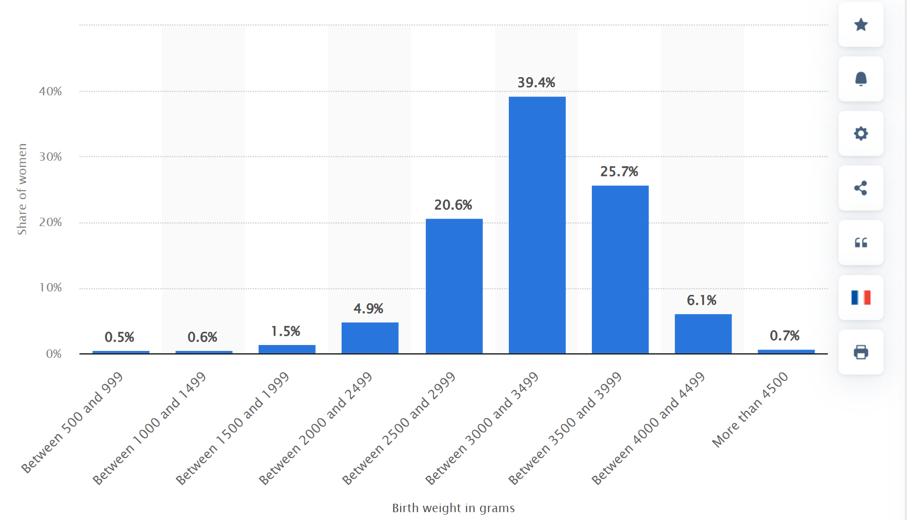 Source: Birth weight of newborns delivered in France 2016, Statistia.