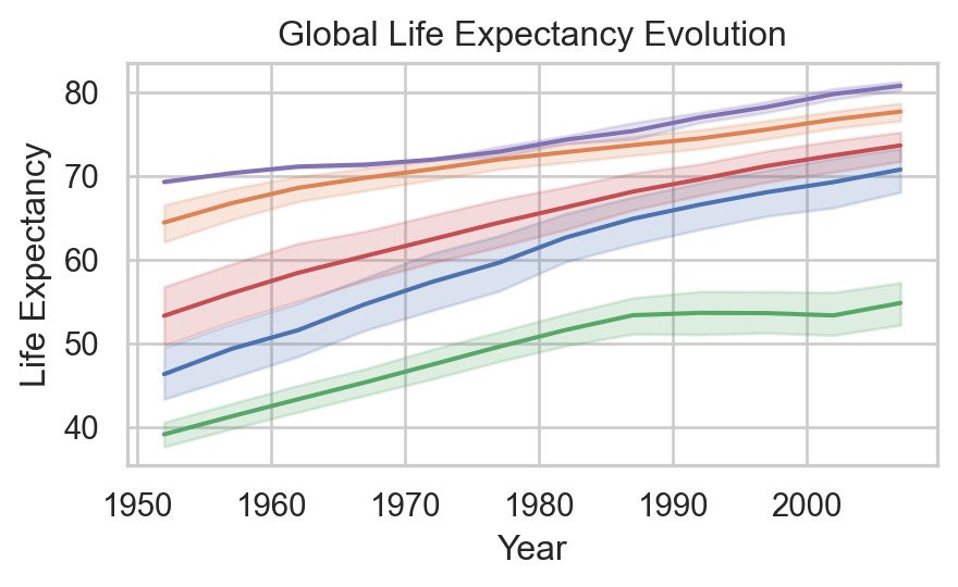 Gapminder dataset: worldâs changes from \(1952\) to \(2007\).Video: Hans Roslingâs 200 Countries, 200 Years, 4 Minutes.| country | continent | lifeExp | pop | gdpPercap |
