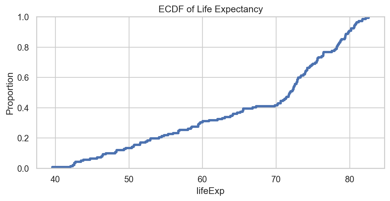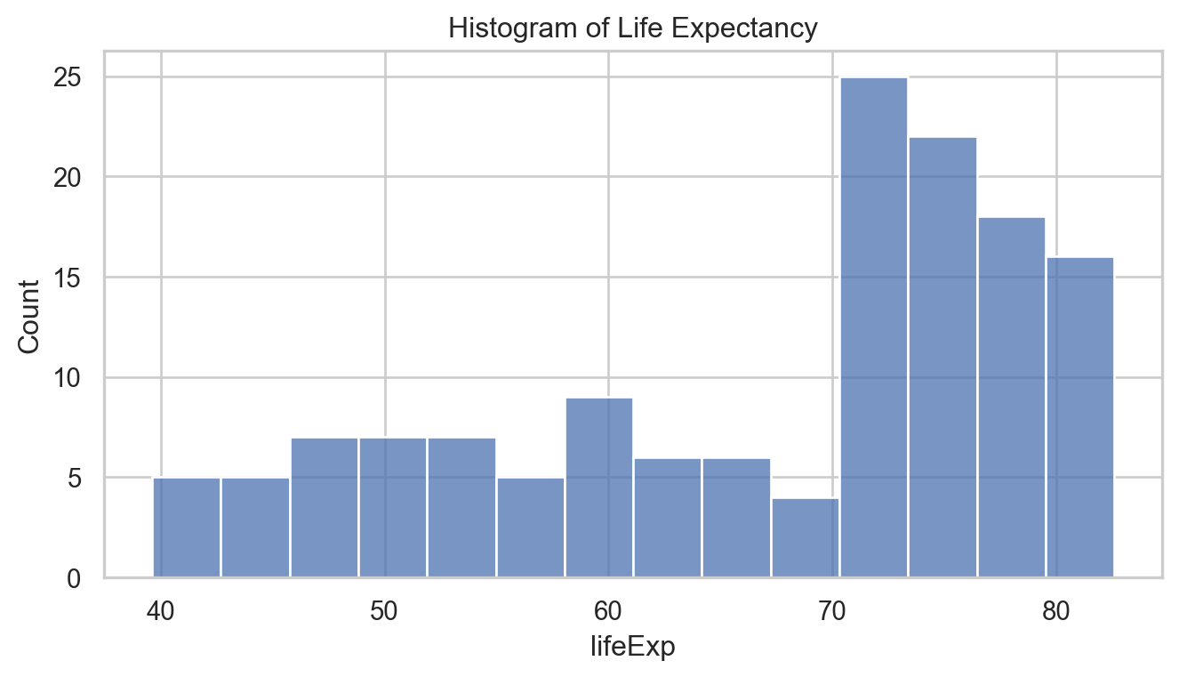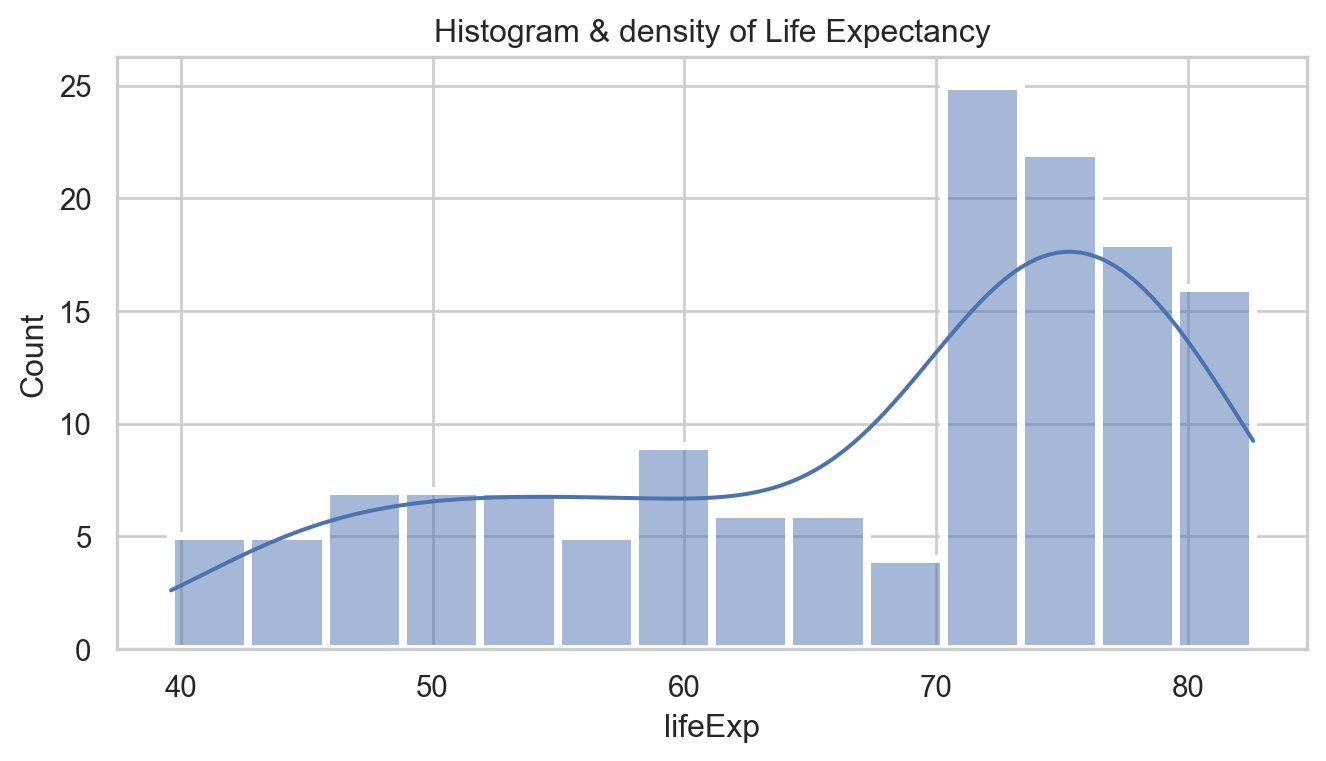Gapminder dataset: worldâs changes from \(1952\) to \(2007\).Video: Hans Roslingâs 200 Countries, 200 Years, 4 Minutes.| pop | lifeExp | gdpPercap | |