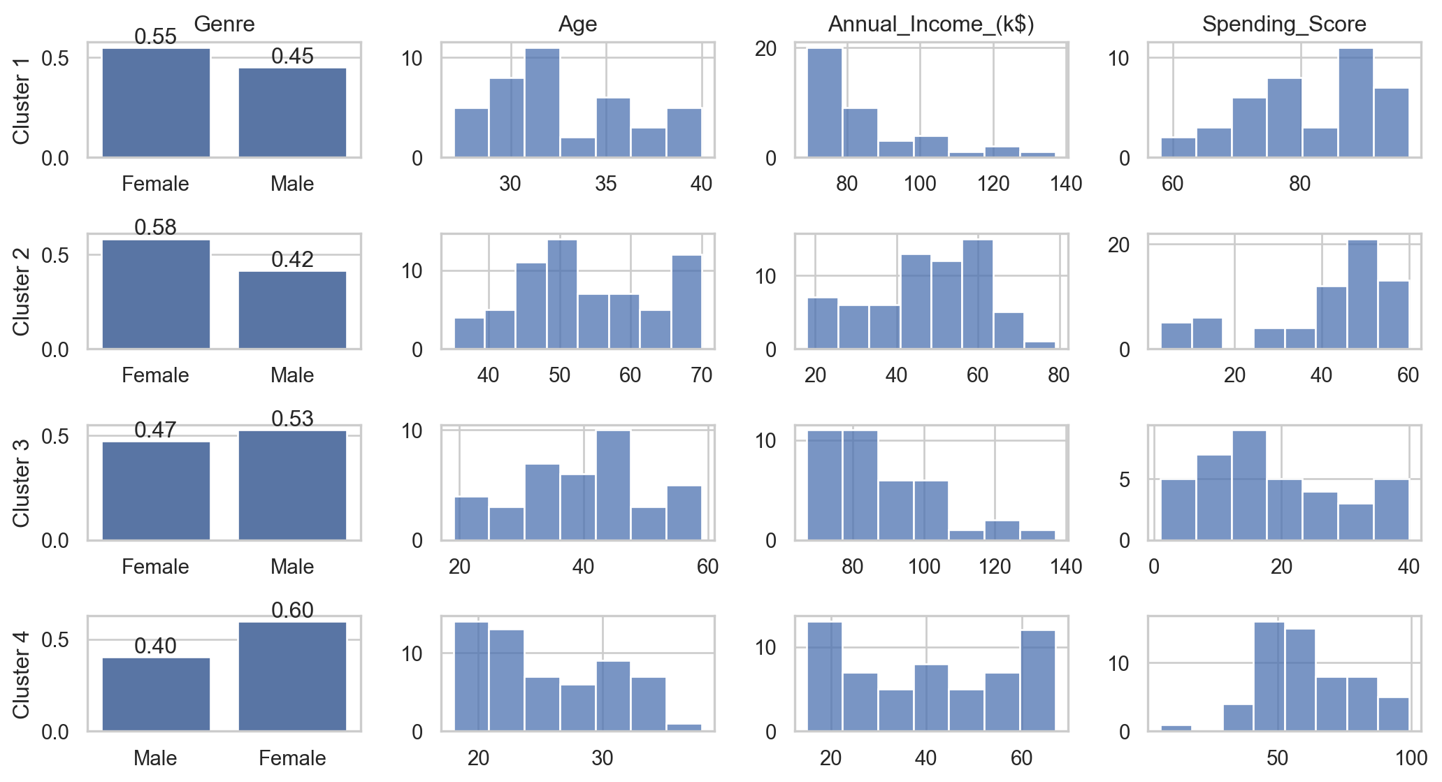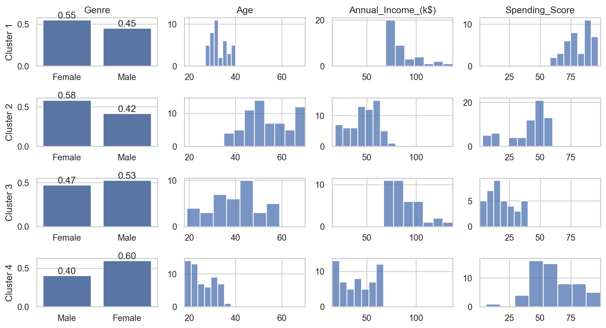 Genre Age Annual_Income_(k$) Spending_Score