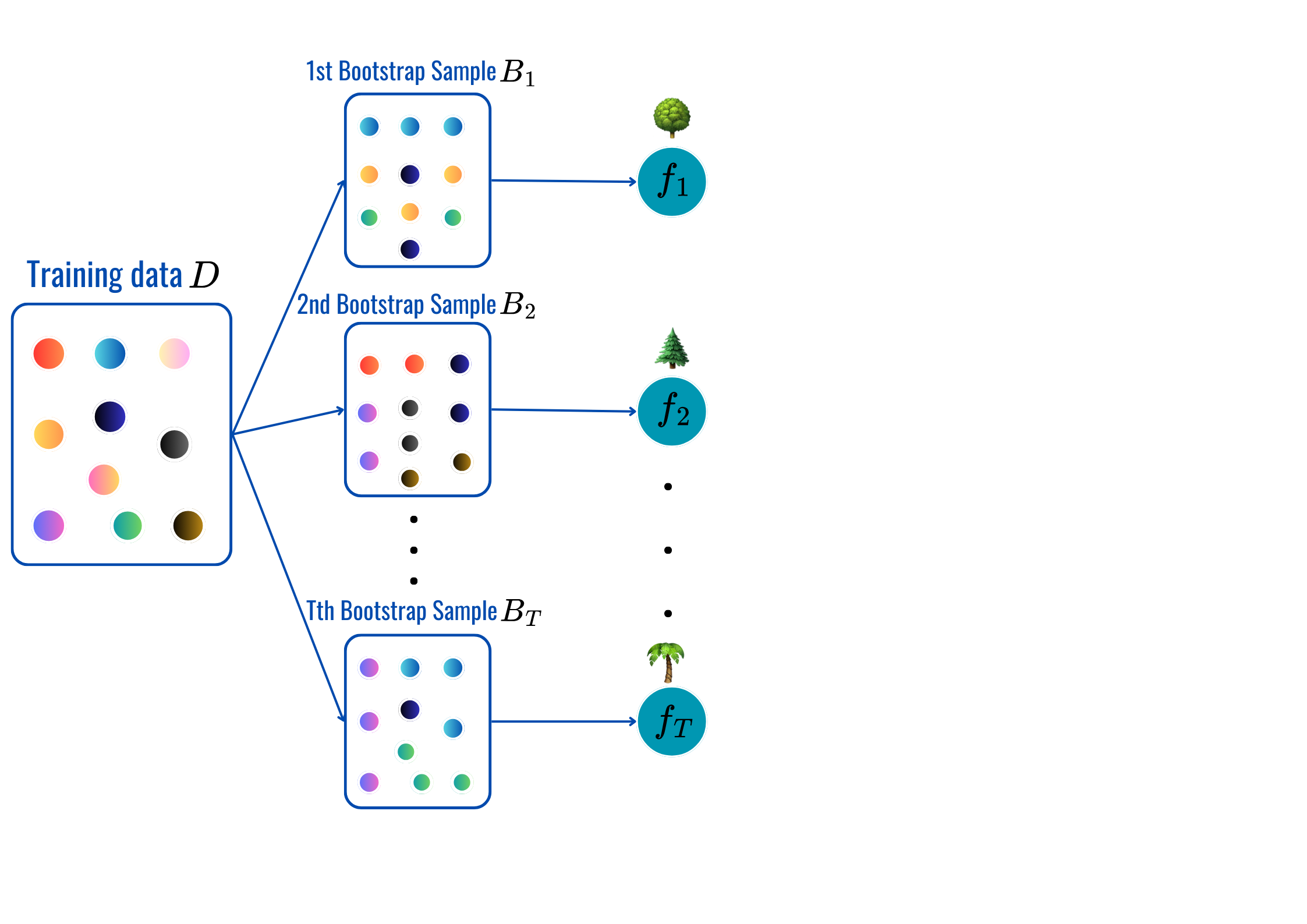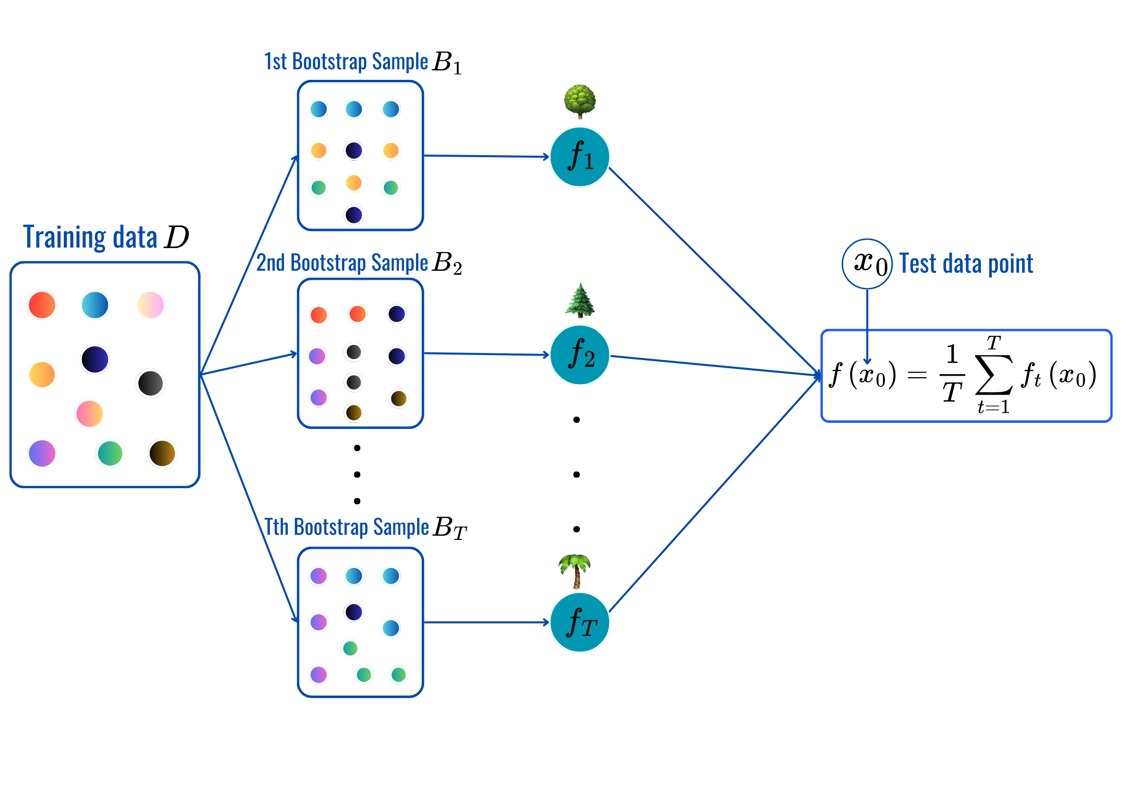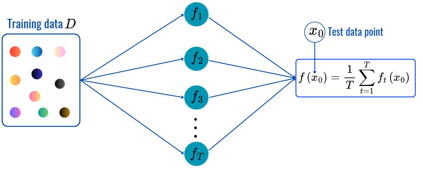Bagging: Combines high-varianced base learners (trees) to produce a more stable and accurate final model.