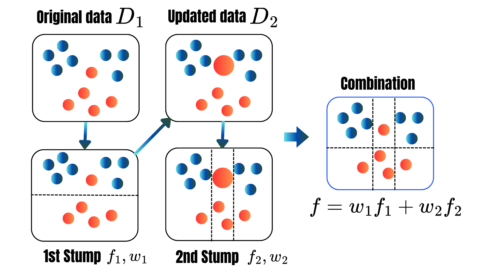 Boosting: Sequentially combines weak learners aiming at correcting mistakes made by the previous built combined learners to create a strong model.
